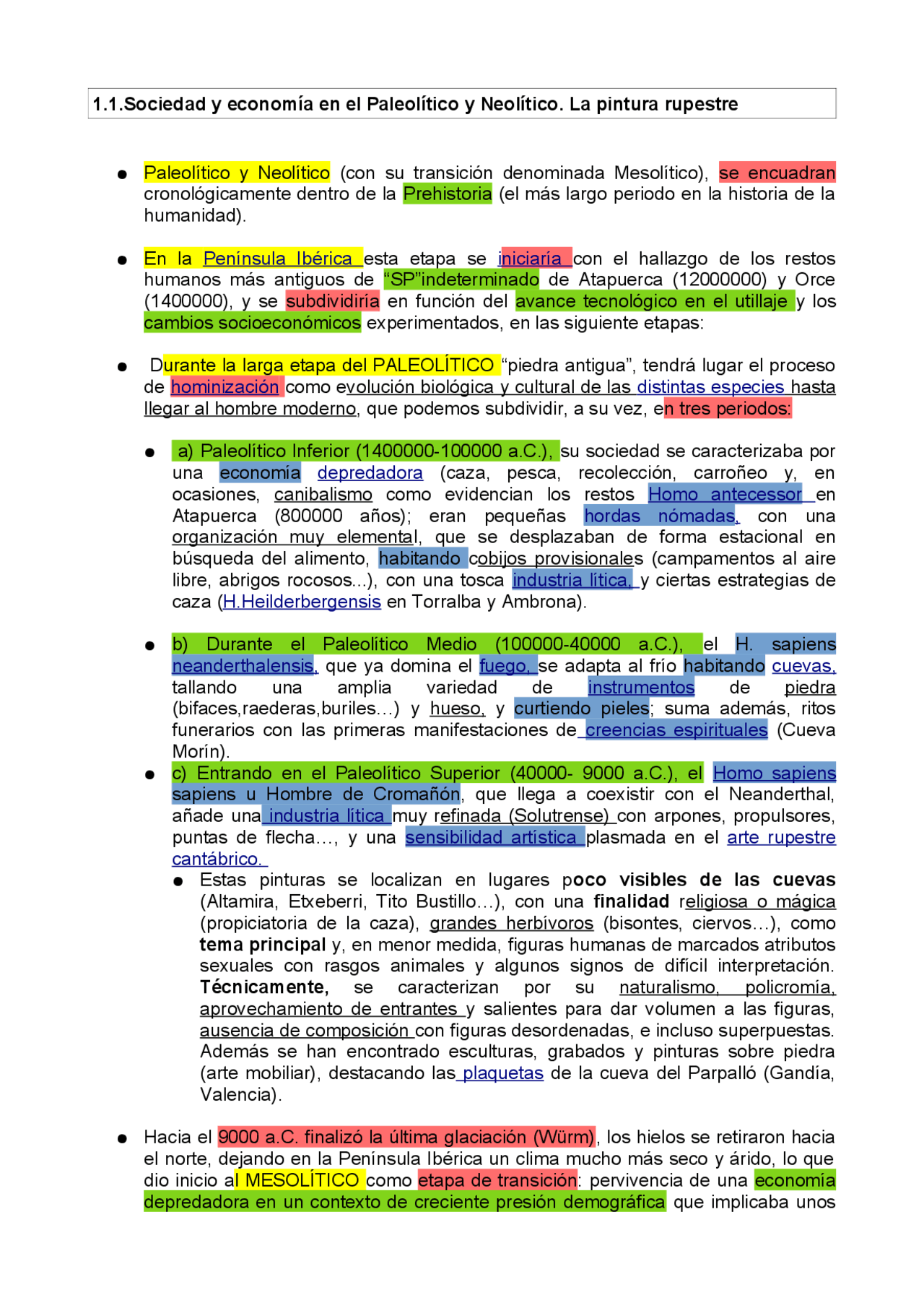 Historia DE España Epígrafes BLOQUE 1. 1 SOCIEDAD Y ECONOMÍA EN EL PALEOLÍTICO Y NEOLÍTICO